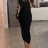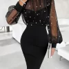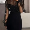 Elegant Party Dresses Woman Sexy Sheer Mesh Patch Beaded Bodycon Dresses Elegant Tight Urban Long Dress Fashion Women's Clothes